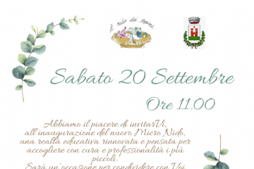 L'Amministrazione Comnale e il Nido dei Topini hanno il piacere di invitarVi, sabato 20 settembre alle ore 11.00, all'inaugurazione del nuovo Micro Nido di Via Arnello n. 10, una realtà educativa...