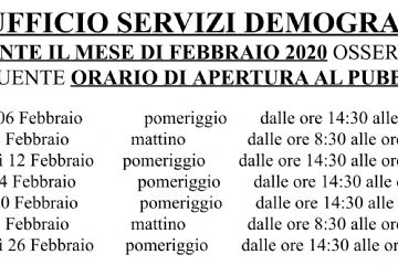 Dal 6 Febbraio l'ufficio demografico seguirà gli orari allegati