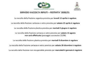 recupero servizio di raccolta rifiuti programmati per il 28/12/2020