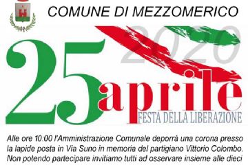 Alle ore 10:00 l’amministrazione depositerà una corona presso la lapide in Via Suno in memoria del Partigiano Vittorio Colombo.