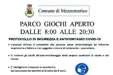 Si avvisa che a partire da Martedì 4 Agosto 2020 riaprirà il parco giochi comunale.