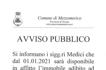 Si informano i sig. medici che dal 01.01.2020 sarà disponibile in affitto l'immobile adibito a studio medico. Chi fosse interessato può presentare domanda entro il 31.12.2020 presso gli uffici...